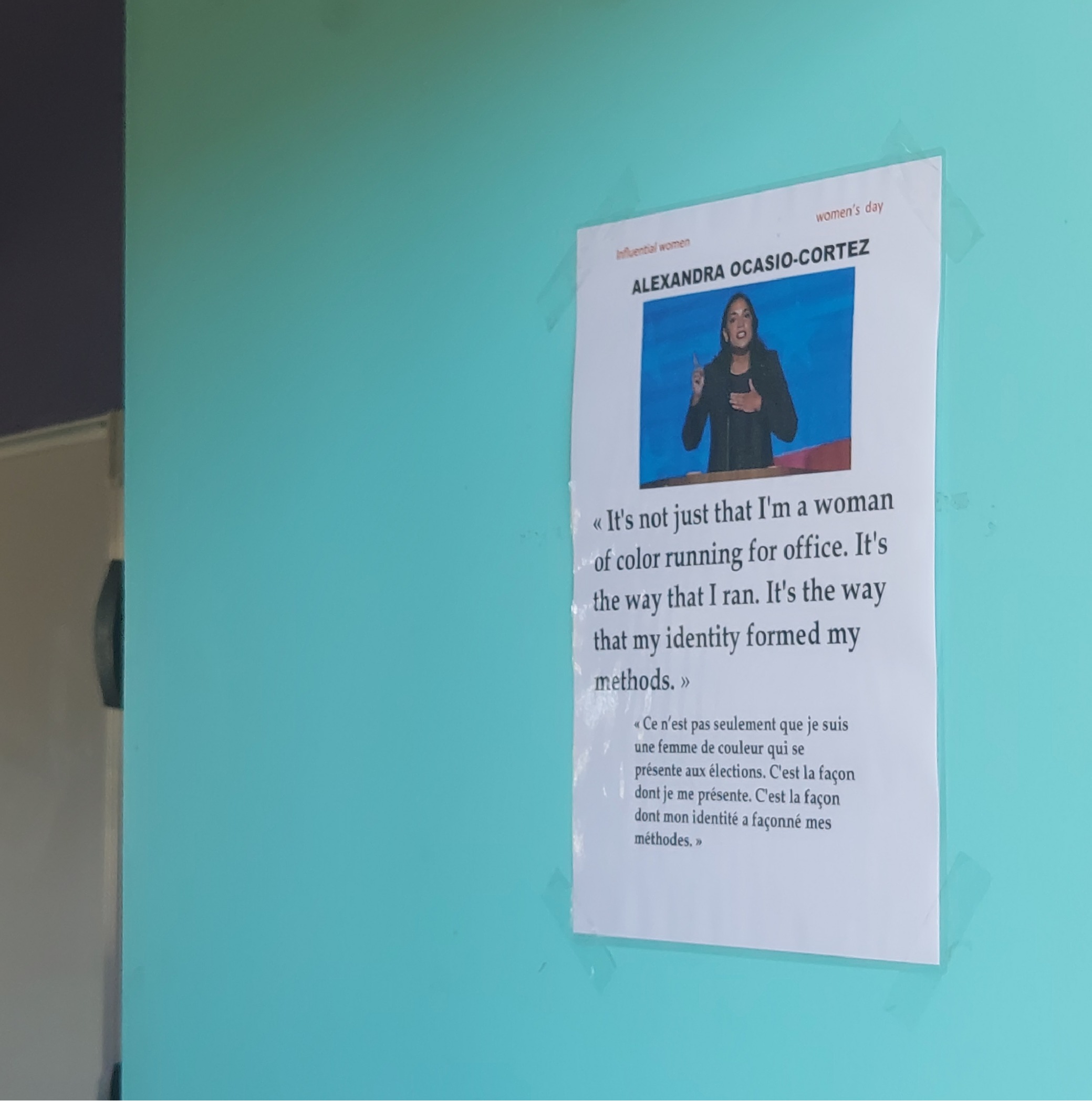 Les élèves de 3e LCE du collège de Normandie ont travaillé sur des citations bilingues de femmes influentes et célèbres. Ces affiches ont été collées sur chaque porte de classe et donneront matière à réfléchir aux élèves à leur entrée au collège lundi 10 mars au matin. De quoi célébrer la journée des droits de la femme qui a eu lieu le samedi 8 mars.